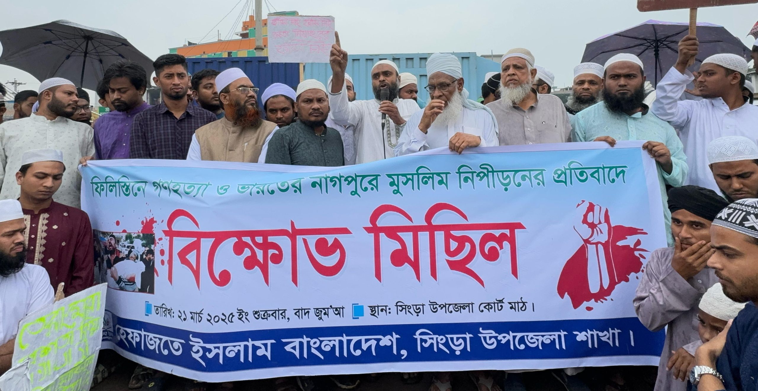 ফিলিস্তিনে ইসরাইয়েল কর্তৃক চলমান গণহত্যা ও ভারতের নাগপুরে মুসলিম নির্যাতনের প্রতিবাদে নাটোরের সিংড়ায় বিক্ষোভ মিছিল ও প্রতিবাদ সমাবেশ অনুষ্ঠিত হয়েছে।